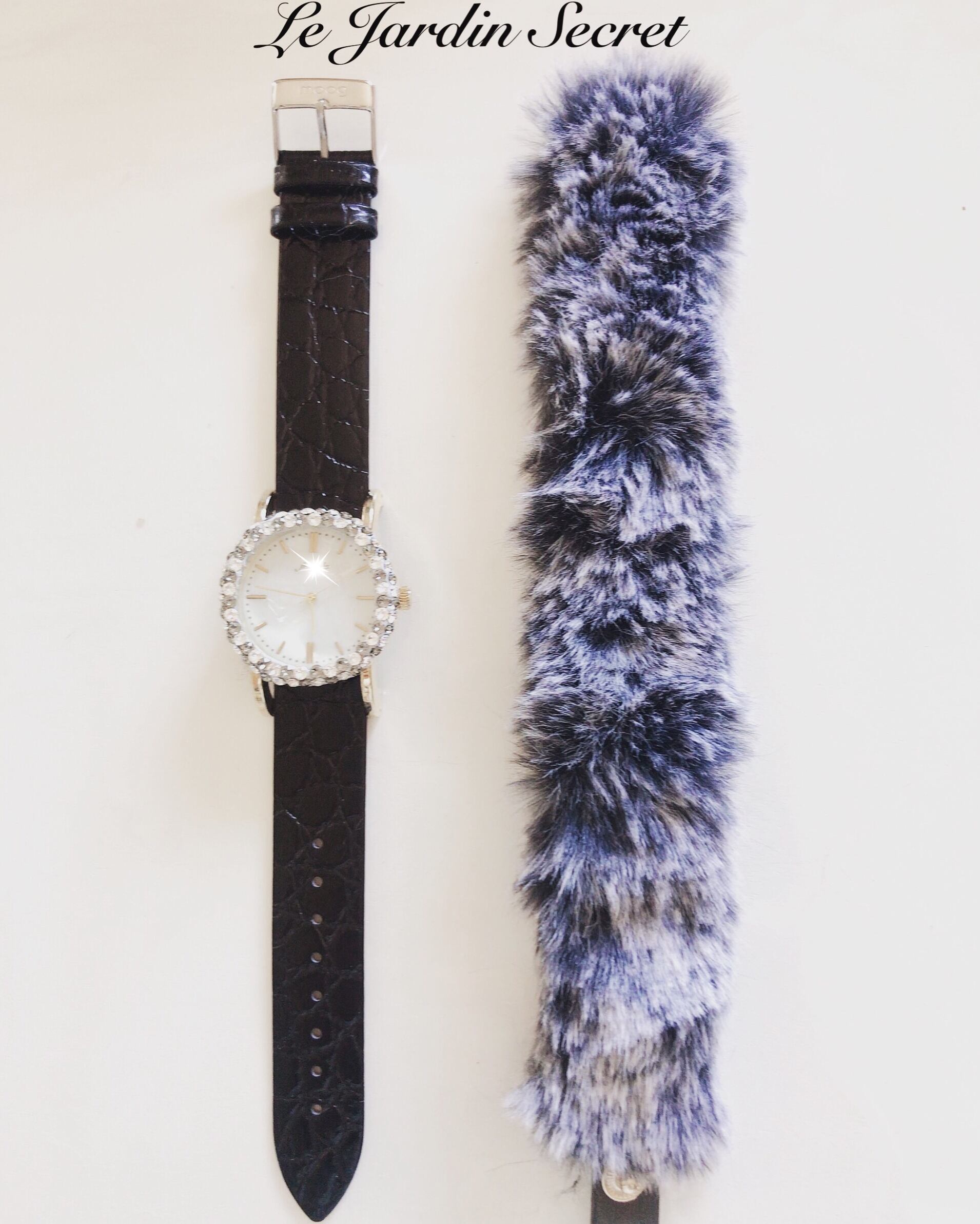 秋冬はもふもふ、春夏は型押しベルトにお着替えと一年中楽しめるジュエルウォッチです。