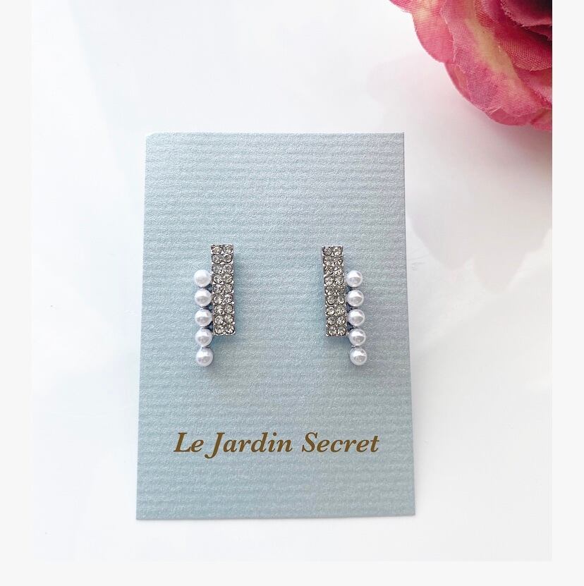 キラキラとパールが並んだピアス/イヤリングです。