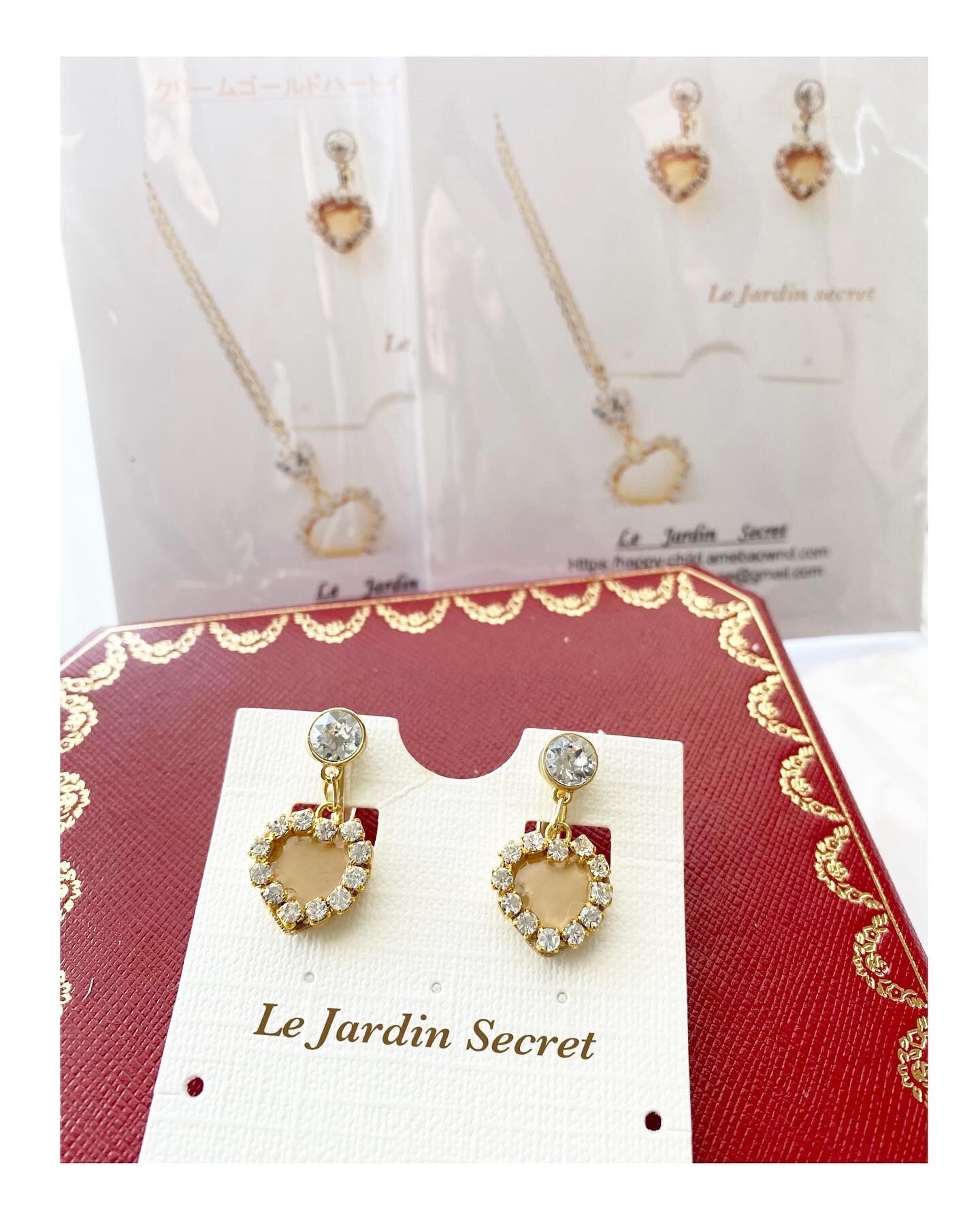 クリームゴールドのグルー(粘土)で作るはハートイヤリング/ピアスです。
