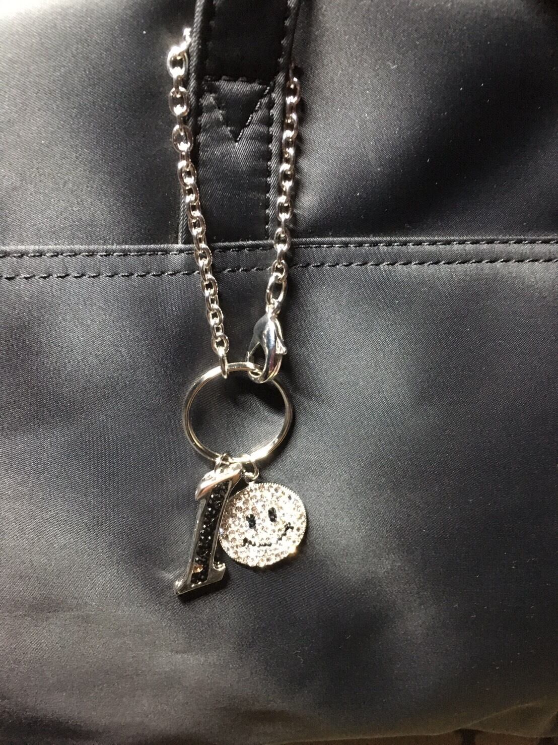 ニコちゃんとイニシャルの付いたバックチャームです。ニコちゃんのスワロフスキーはクリスタル。イニシャルはジェット(黒)。 男性へのプレゼントにいかがですか? *父の日*誕生日*バレンタイン